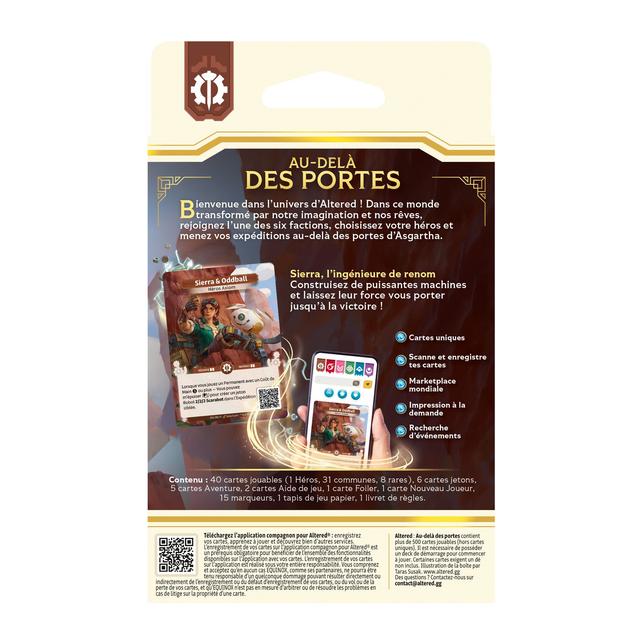 Altered est un jeu de cartes à collectionner qui se joue à deux, dans lequel chaque joueur construit un deck dirigé par une carte héros ou héroïne. Dans Altered, tu mènes deux expéditions qui explorent les terres entourant ta péninsule natale d'Asgartha.